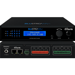 Dante® digital audio converter allows any non-Dante® audio source such as mixing consoles, amplifiers, computers and Blustream Matrix / distribution products to be connected as an audio source within a